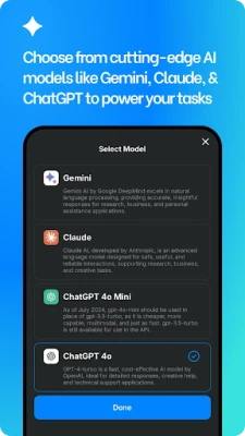 AskAI memanfaatkan kekuatan ChatGPT API, GPT-4o, Gemini, dan Claude untuk interaksi cerdas layaknya manusia. Dapatkan bantuan personal untuk komunikasi bisnis atau ekspresi kreatif Anda, disesuaikan dengan kebutuhan unik Anda.