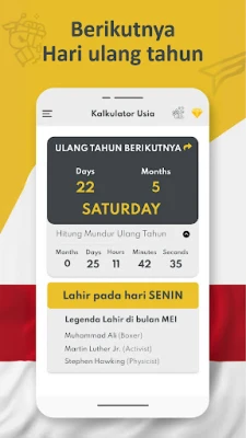 **Aplikasi umur** tidak hanya sekadar pengingat; ia adalah asisten pribadi Anda dalam mengelola data usia secara presisi. Cukup masukkan tanggal lahir, dan seketika **kalkulator umur bulan** ini akan menampilkan usia detail dalam tahun, bulan, hari, jam, bahkan menit. Bayangkan memiliki kemampuan untuk mengetahui dengan pasti berapa usia Anda atau buah hati Anda saat ini, atau berapa sisa hari menuju ulang tahun berikutnya. Fitur hitung mundur interaktifnya akan menjadi teman setia Anda, menghitung mundur setiap detik menuju perayaan yang dinanti, sehingga Anda selalu siap untuk merayakannya tepat waktu.
