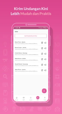 Transformasikan tampilan undangan Anda agar semakin memukau dengan beragam pilihan tema elegan yang tersedia, memastikan setiap kiriman mencerminkan gaya dan kepribadian unik Anda. Setelah sempurna, sebarkan undangan ke kerabat dan teman terdekat melalui media sosial favorit atau email dengan praktis. Tetap terhubung secara real-time dengan notifikasi kehadiran tamu dan pesan-pesan hangat yang mereka kirimkan. Anda juga memiliki kendali penuh untuk mengelola daftar tamu tanpa batas dan melakukan penyesuaian pada undangan kapan saja dan di mana saja, menjamin fleksibilitas penuh dalam persiapan hari bahagia Anda.